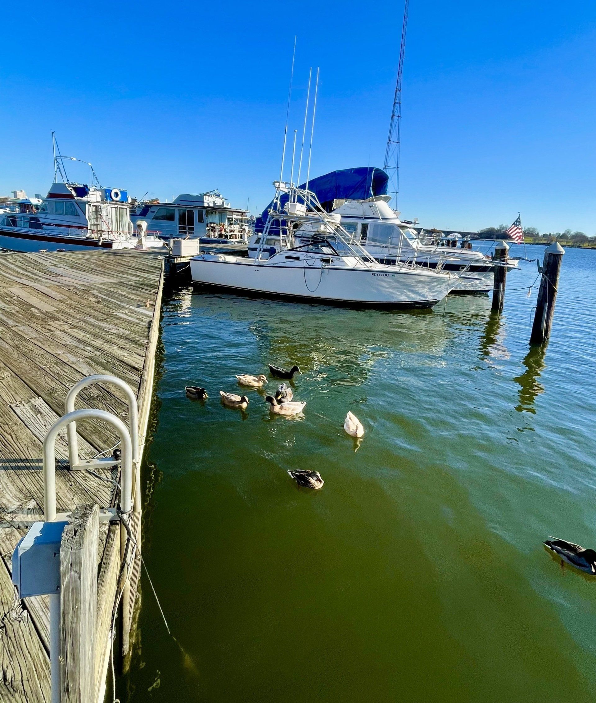 From the marina, visitors can see Baltimore’s past, present and future. From our pier, to the left is Baltimore as it may have looked in the 1950s, with military-style housing, smokestacks pulsing dirty air upward, and trains running through a flat landscape. Straight ahead is downtown as we know it, a shining city on a slight hill. Look to the right and there is the promise of new developments at the area formerly known as Port Covington. Further is the Hanover Street Bridge, glamorous, more like the bridges of Washington, D.C., or Paris than like one of ours.
